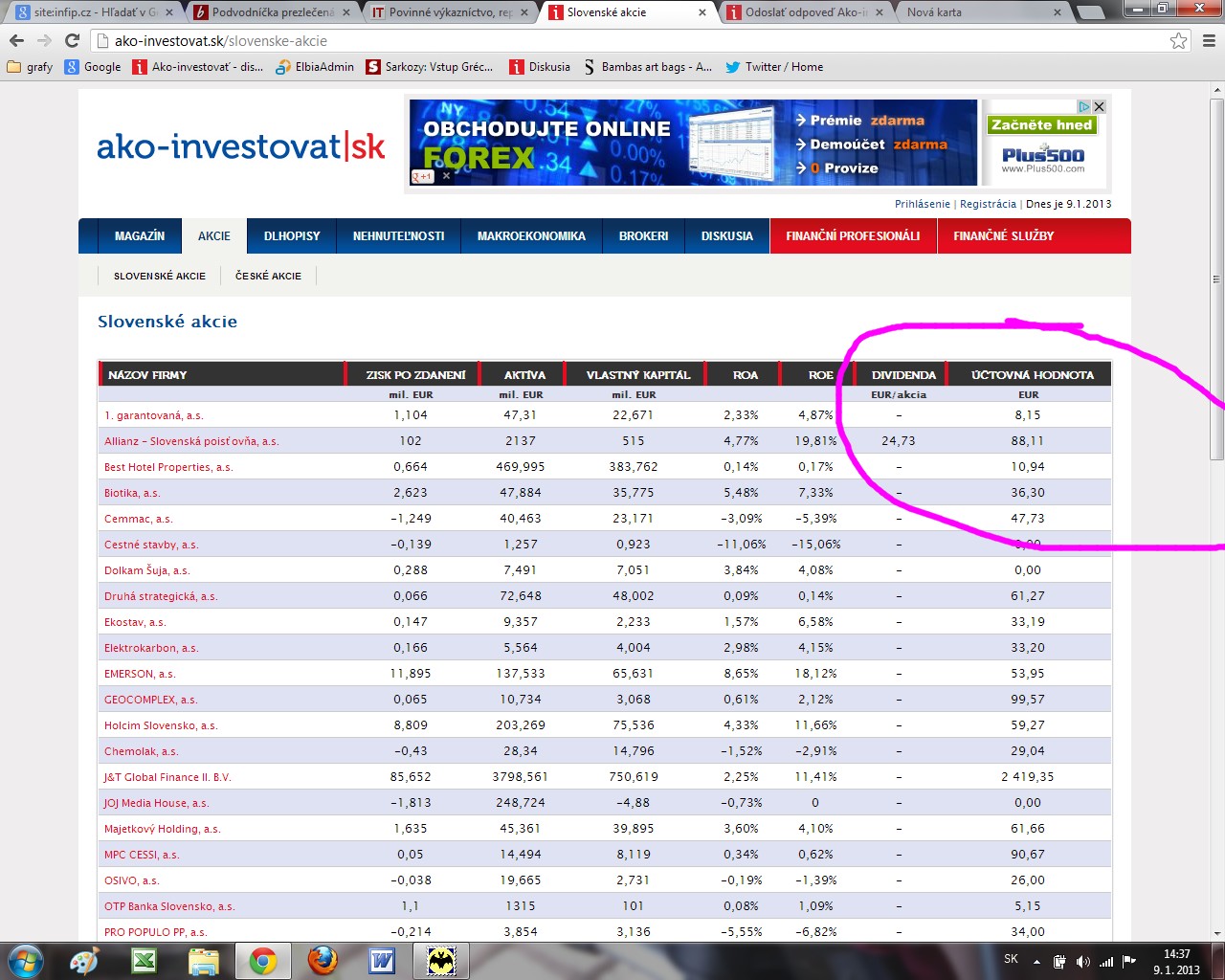 k slovenskym akciam sme pridali aj uctovnu hodnotu (posledny stlpec):