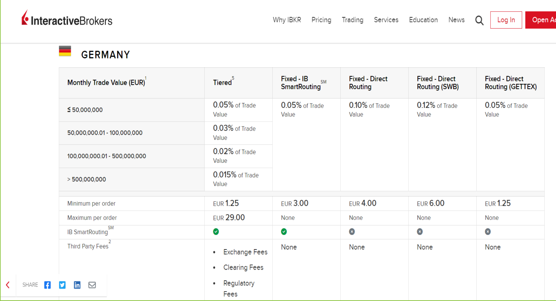 Tie third party fees sa dajú rozklikať nižšie. Pri XETRE je exch.fee min. 0,60 €, clearing 0,001% a regulatory 1 cent