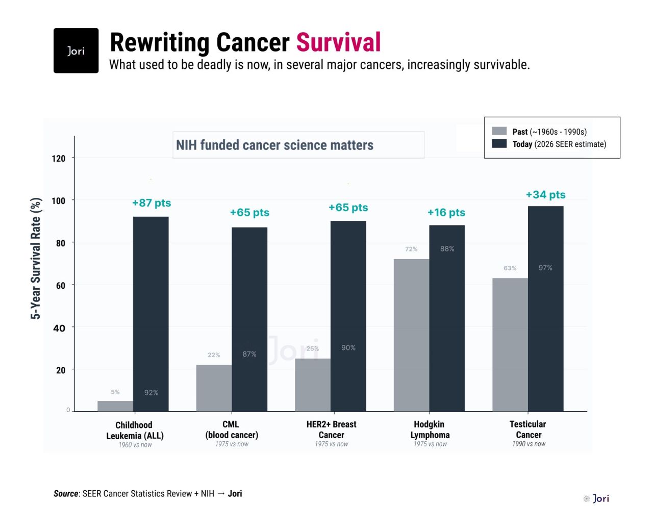 Ako sa zmenila miera prežitia pri jednotlivých druhoch rakoviny od rokov 1960 až 1990 v porovnaní s dneškom? Napríklad pri detskej leukémii sa zvýšila z 5 % na 92 %.