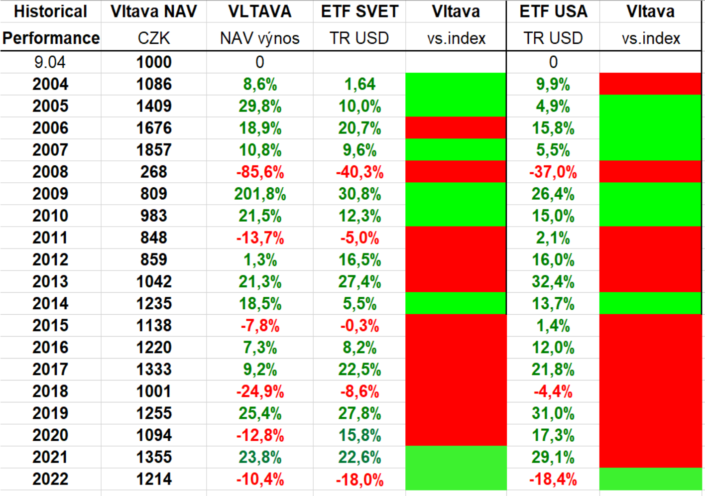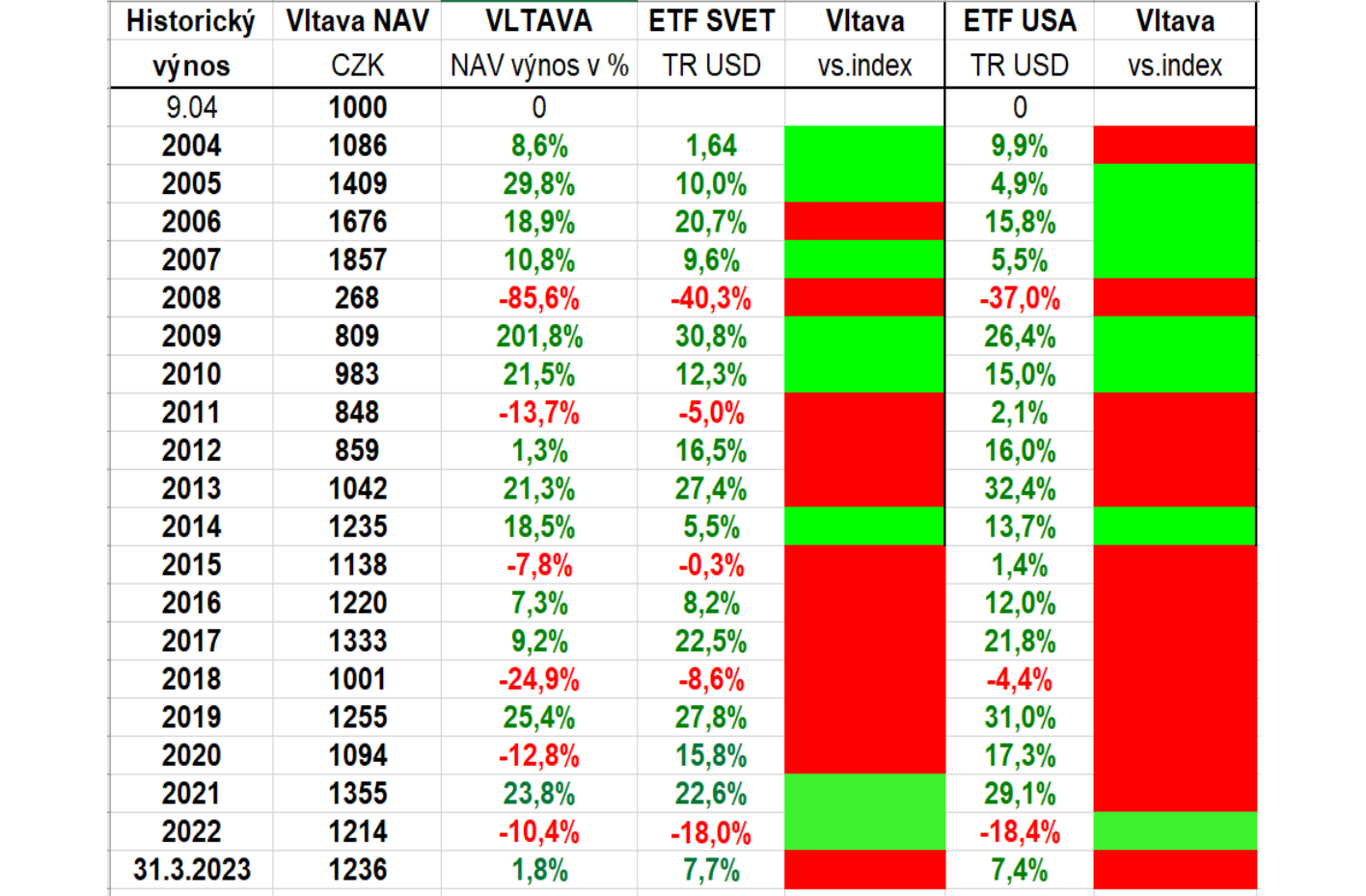 DANIEL GLADIŠ fond Vltava (CZK): +1,65% p.a. od založenia 1.9.2004 = 16,8 R. ETF World v EUR za ten istý čas: +8,89% p.a.