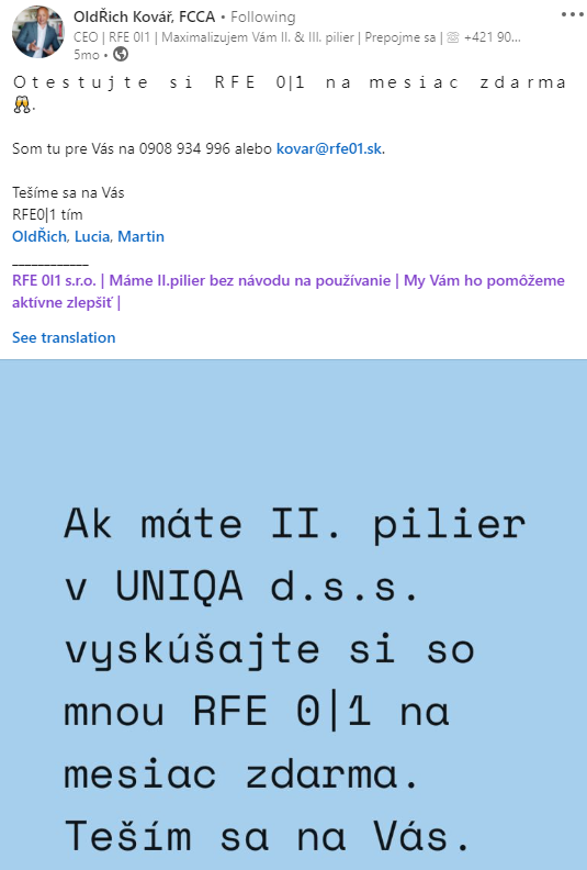 Nemienim tomu robiť mega kampaň ako v Chile je to pre určitý okruh bonitných klientov, moja cieľovka sú klienti 45+ ktorí tam majú nasporené € 40 000 a viac.