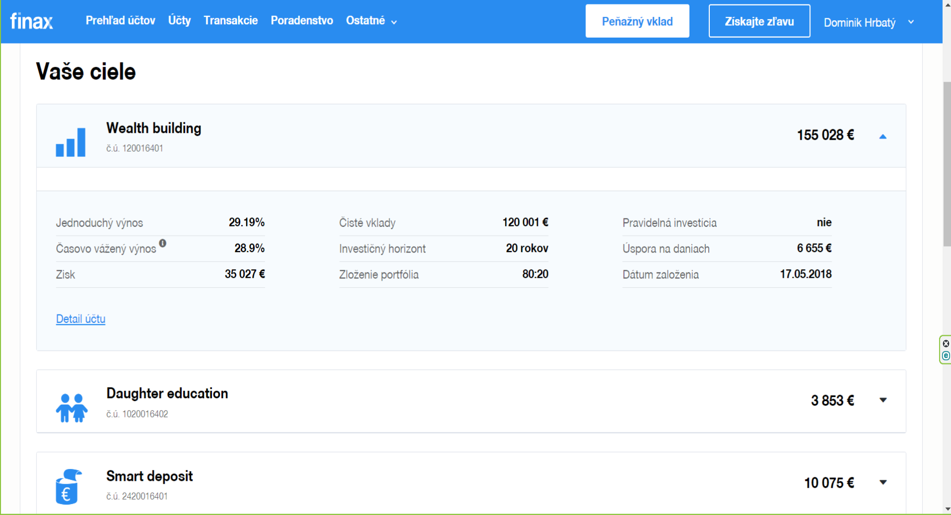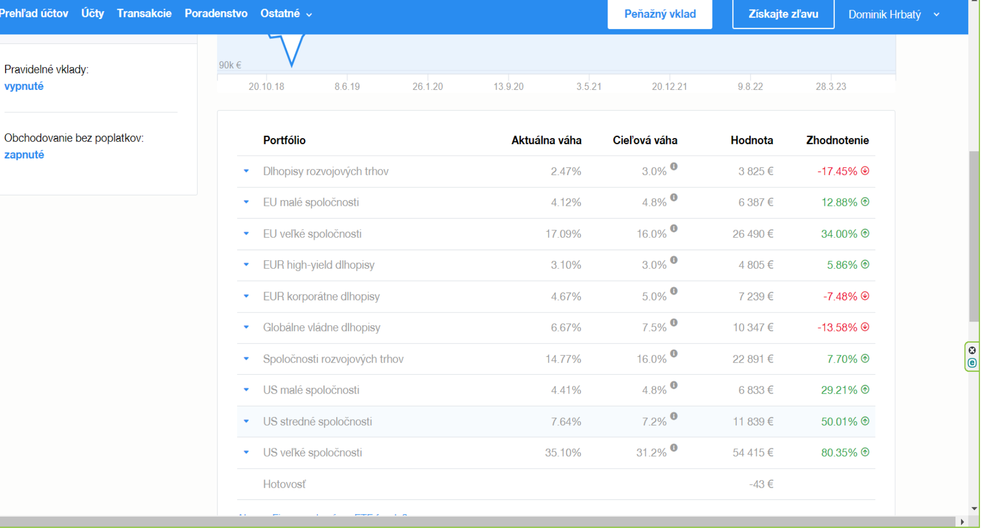 DOMINIK HRBATÝ - FINAX (EUR) = investovanie cez etf: +13,49% . Celkovo od 21.5.2018: +36,63% (+5,72% p.a.).
