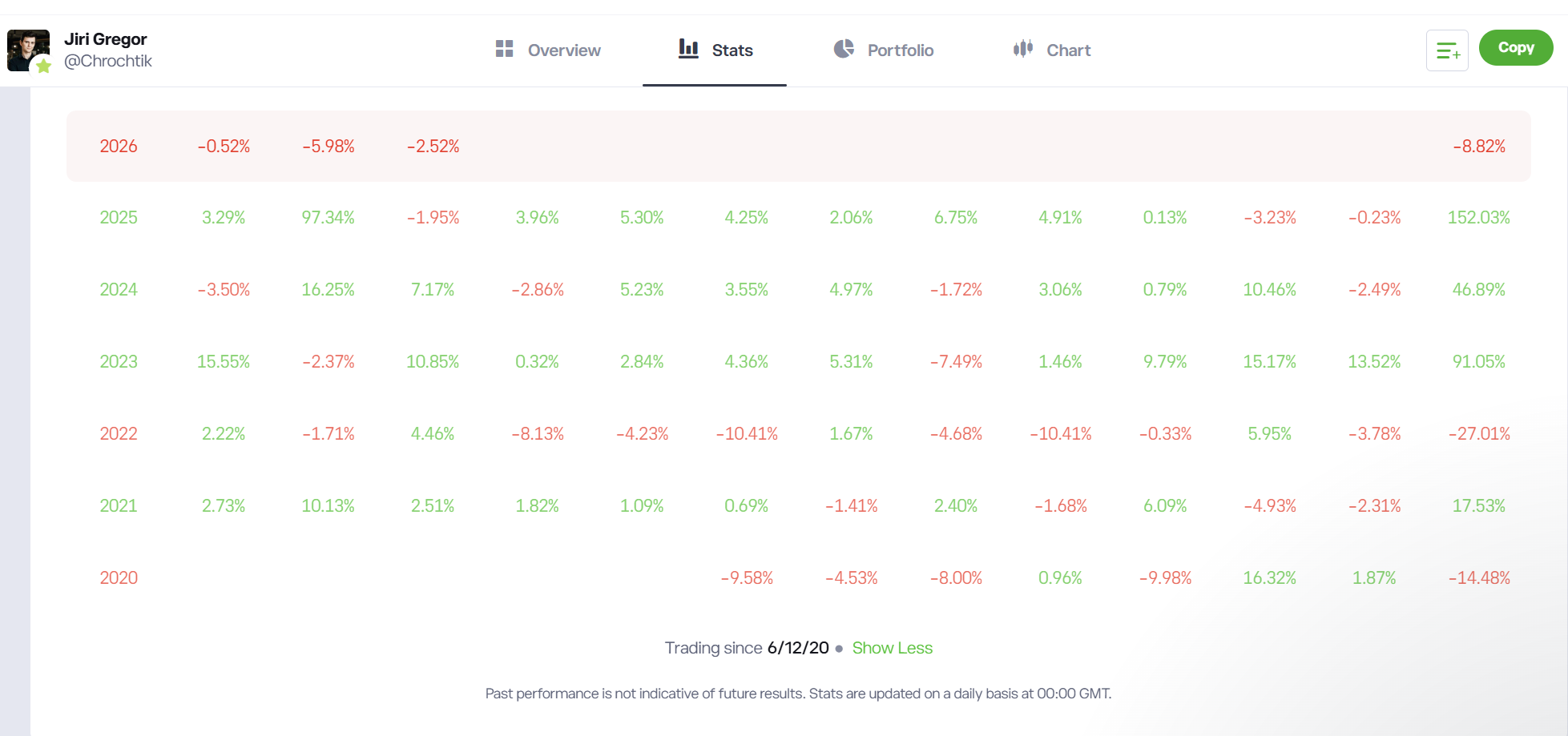 Chrochtík je nekonzistentný. Celá jeho performance je +97% za jediný mesiac: Feb 2025