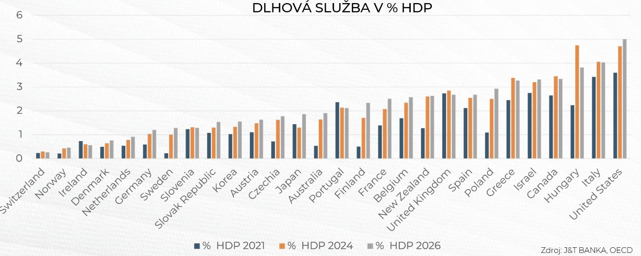 - Je všeobecne známe, že verejné financie väčšiny krajín Západu sú na ťažko udržateľnej trajektórii. Ich kritický stav nie je tvorcami hospodárskych politík v zásade nijako adresovaný a fiškálna politika je ďalej expanzívna. Dlh v pomere k HDP pokračuje v raste, pričom samotné tempá ekonomického rastu sú mimoriadne nízke so slabou a ďalej klesajúcou konkurencieschopnosťou (s výnimkou Spojených štátov), kde takisto na horizonte nevidno veľkú politickú vôľu, najmä v EÚ, k ráznym reformám, keď ideologické postoje prevládajú nad ekonomickou racionalitou.