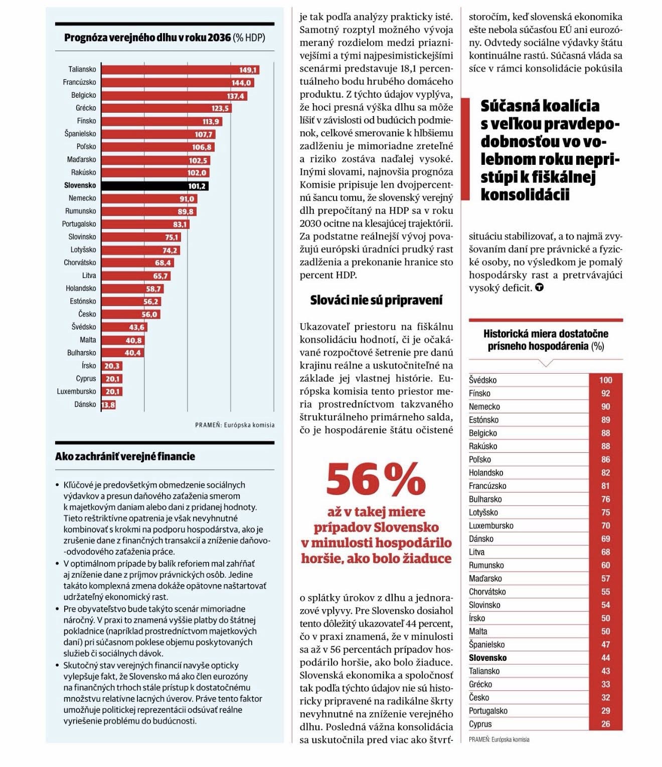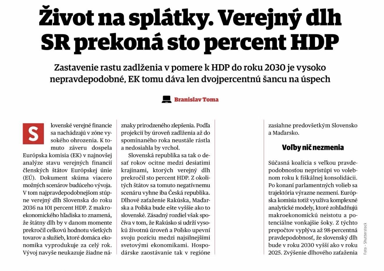 Ak nič nezmeníme, náš verejný dlh do roku 2036 prekoná 101 % HDP. Prognóza pravdepodobna na 98%