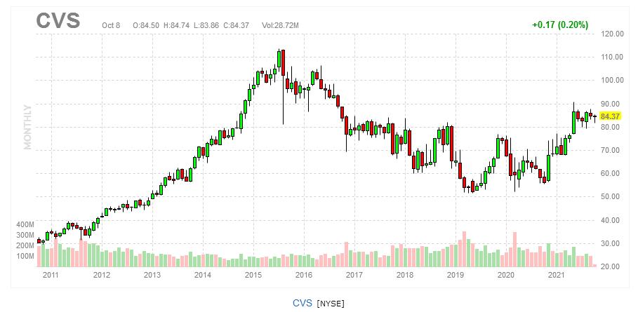 Jeho priemer je 70,60 a je v zisku +21% , pričom cena CVS je aktuálne 85,50.