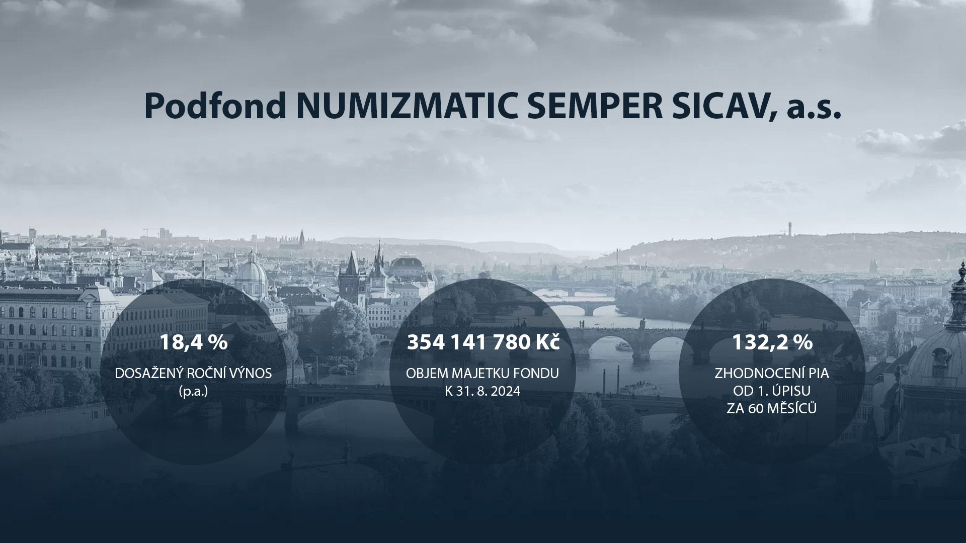 SEMPER SICAV, a.s., Podfond Numizmatic Semper SICAV byl založen již v roce 2017 a jeho primárním zaměřením jsou přímé i nepřímé investice do numismatického materiálu, případně do drahých kovů. Portfolio fondu je tvořeno zejména zlatými a stříbrnými historickými sběratelskými mincemi, doplnkově se v portfoliu mohou objevit i jiné vzácné mince. Investiční horizont tohoto fondu je minimálně 5 let při minimální vstupní investici 1 mil. Kč. Investorům vydává prioritní investiční akcie v EUR, jejich výnos však není nijak garantovaný ani přednostní, takže označení "prioritní" je trochu zavádějící. Zakladatelem fondu je Elizej Macho, který se spolu se svým otcem celoživotně věnují oblasti numismatiky, aukcím a profesionální správě sbírek soukromých klientů. Otec i syn Machovi jsou odborníky ve svém oboru a působí také v renomované společnosti MACHO & CHLAPOVIČ a.s.