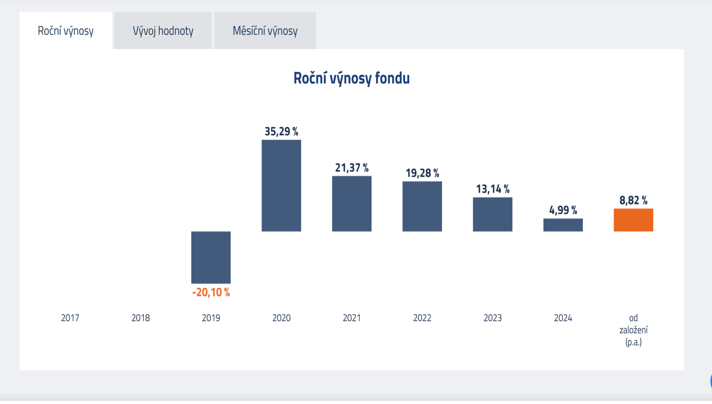Čo je zaujímavé, na stránke ktorá ponúka fondy kvalifikovaných investorov (FKI) je výnos za 2024: +4,99%