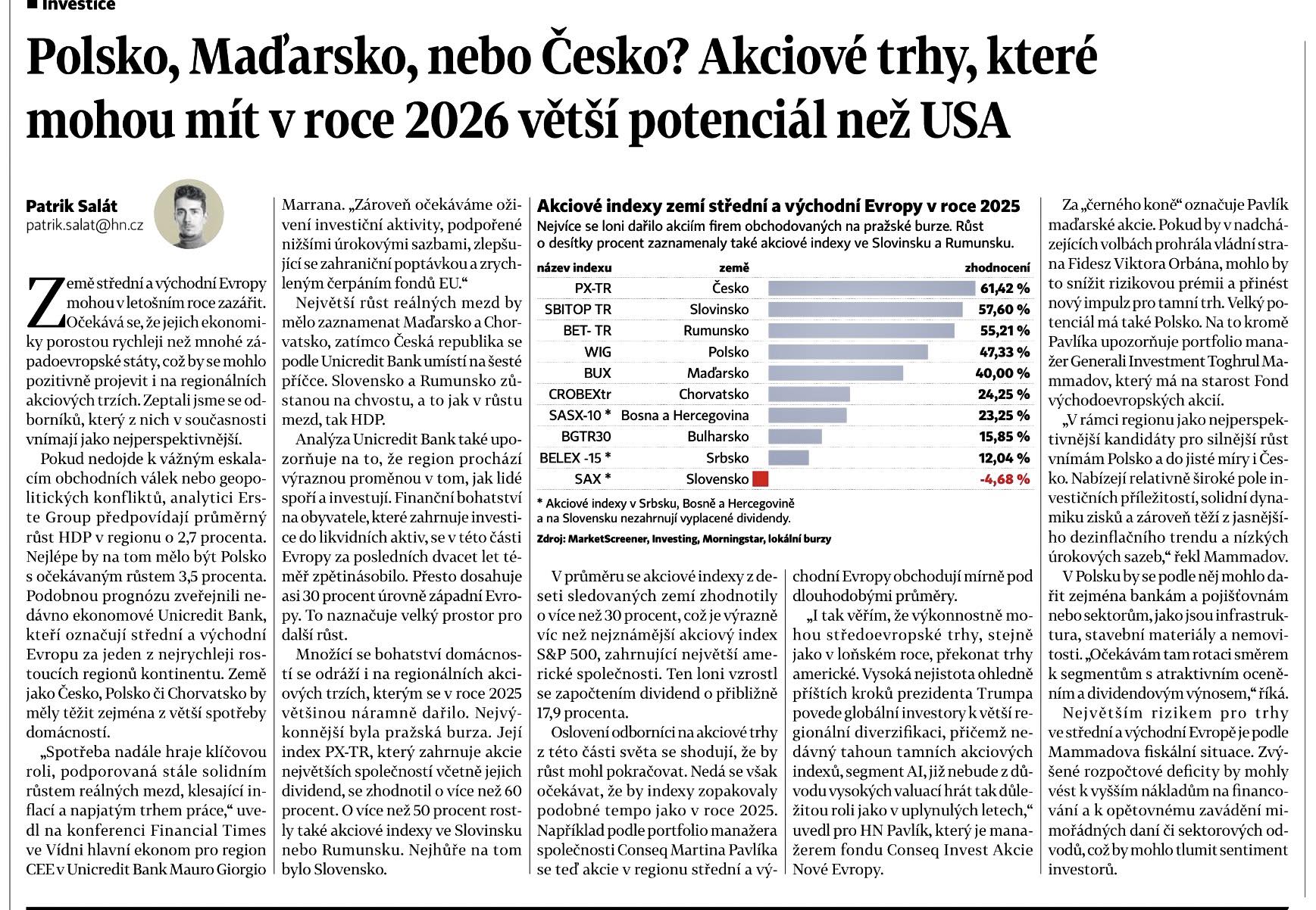 Ak by sme chceli pracovat s TA: Vysledok za 5 rokov (osobne si myslim, ze nema zmysel porovnavat dlhsie obdobie, Polsku, ktore tvori podstatnu cast indexu sa zacalo darit od konca pandemie) Po krátkom útlme spôsobenom pandémiou sa poľská ekonomika odrazila mimoriadne silno. V roku 2021 rástlo HDP tempom 6,8 %, čo bol jeden z najlepších výsledkov v Európe. Poľsko sa vtedy definitívne stalo európskym lídrom v investíciách do infraštruktúry a priemyslu.