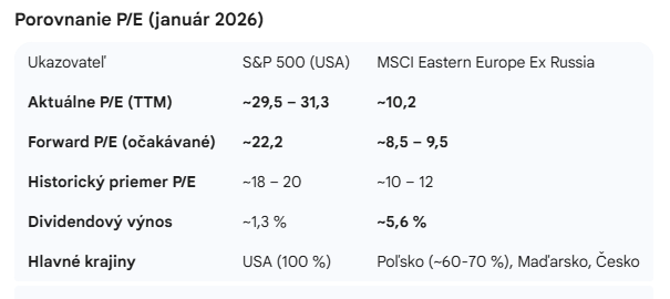 Podla Shiller-CAPE nizsie naopak investicne prilezitosti by mali byt v strednej Europe