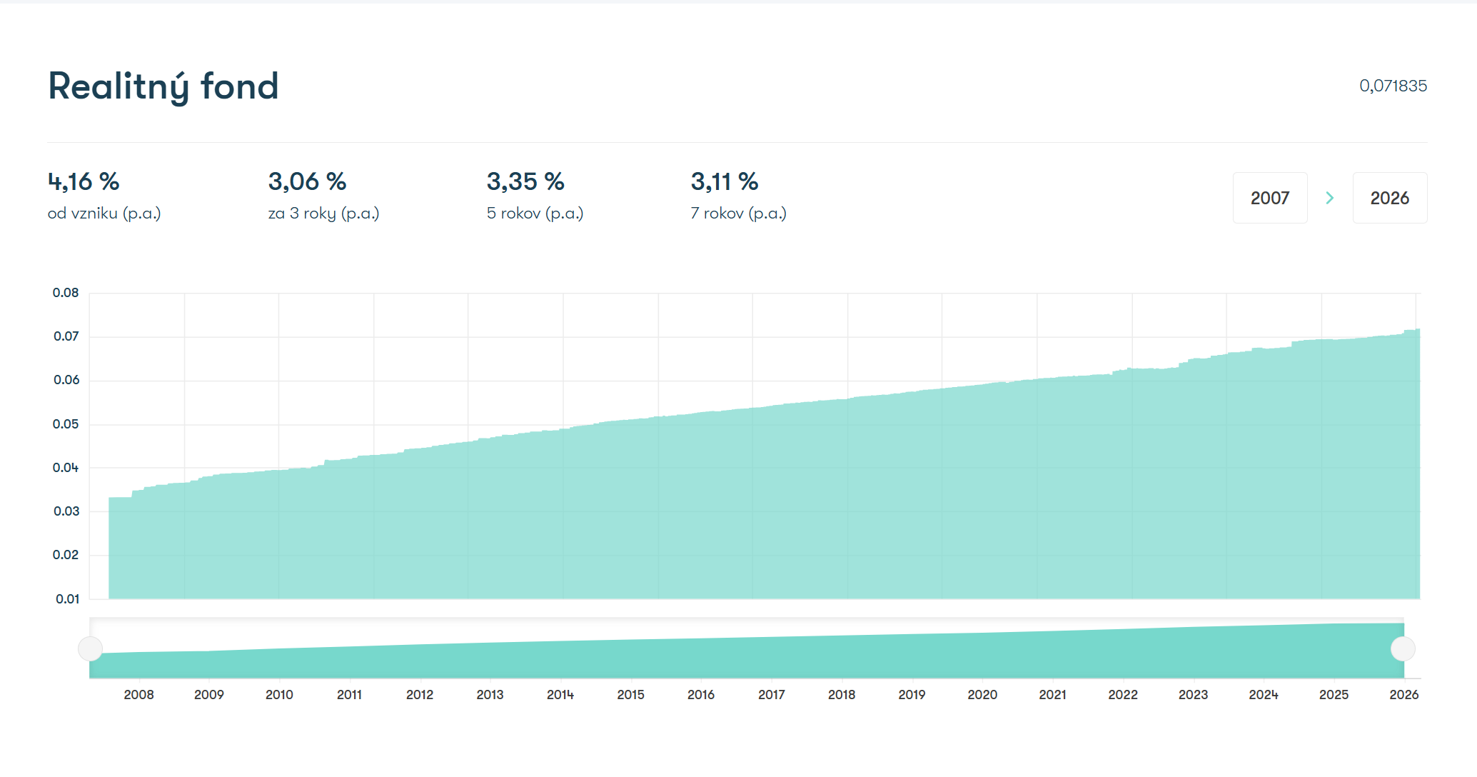 Od začiatku 16.4.2007: +115,37% (+4,19% p.a.).