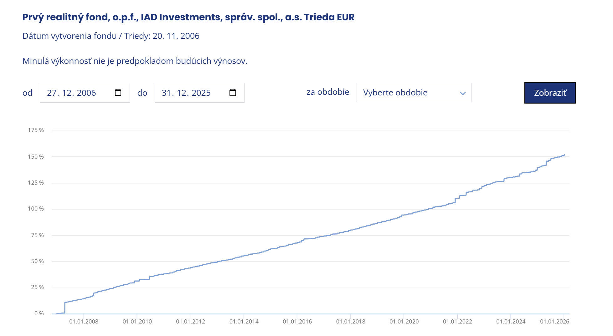 Od začiatku 27.12.2006: +151,84% (+4,98% p.a.).